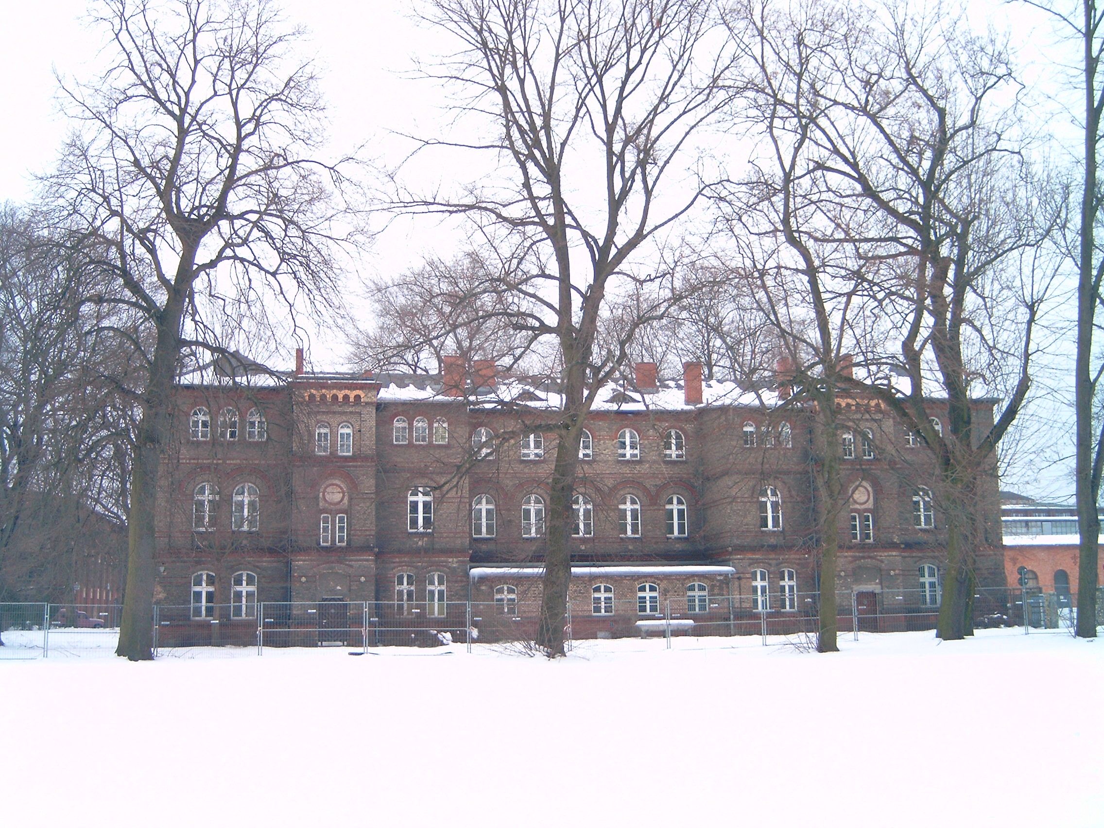Der Standort ist auf der Insel Eiswerder, die verbunden ist mit dem Festland über zwei Straßenbrücken: