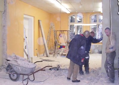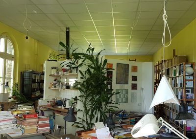 Büros, Ateliers, Werkstätten, Studios, für selbständig Schaffende unterschiedlicher Berufsfelder und Nationen bzw. Vereine und Verbände haben sich sukzessive in unserem Denkmalobjekt niedergelassen. Eine reine Wohnnutzung ist in dem Erbpacht-Projekt nicht möglich bzw. nicht vorgesehen, sondern nur in Teilbereichen und nur in Kombination mit einer Arbeitsstätte – also eine kleinteilige Nutzungsmischung anstatt strikter Trennung von Arbeiten und Leben.
