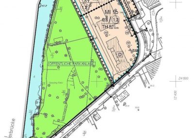 Das Grundstück mit 2.735m² liegt, laut Bebauungsplan VIII-533b, im Mischgebiet M1b,